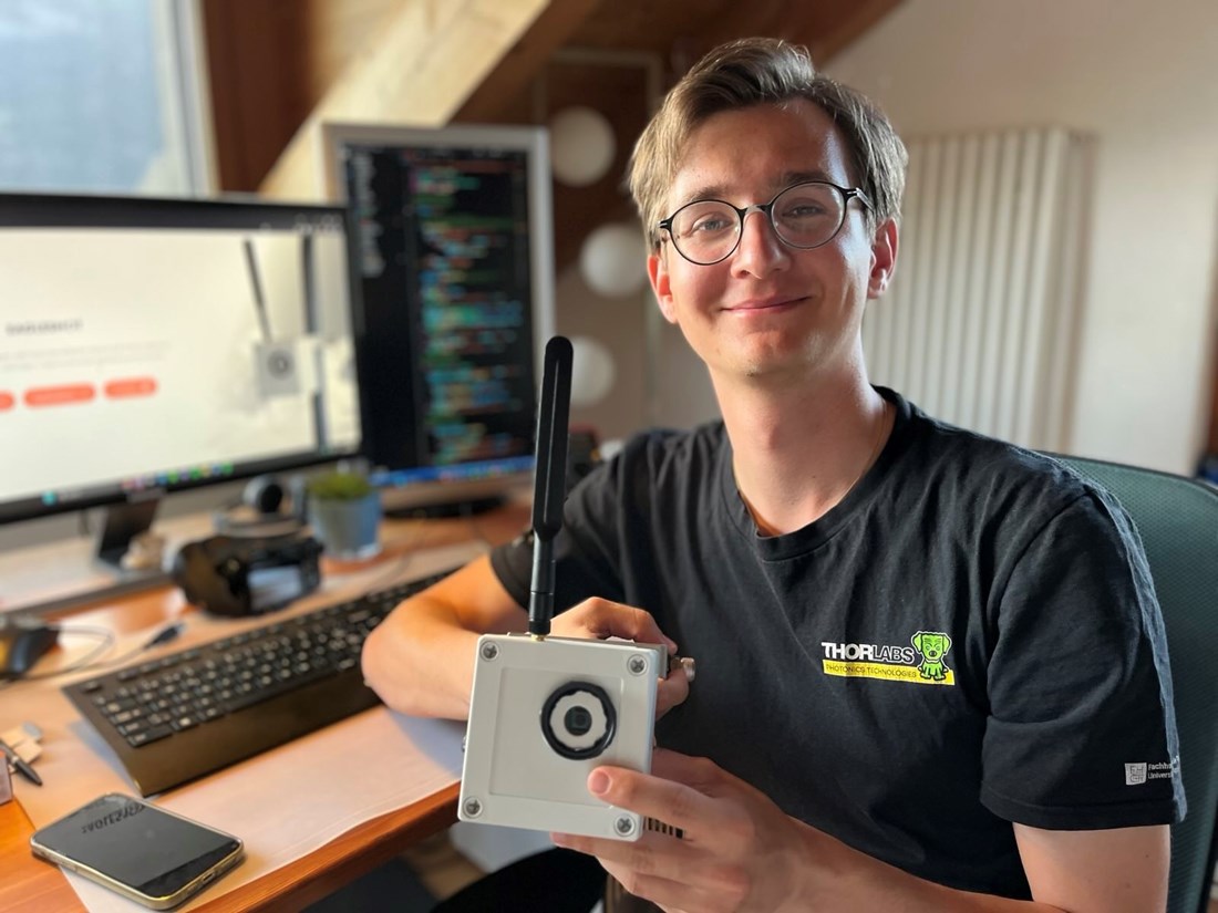 Im Bild: Noel Frey, heute Wissenschaftlicher Projektmitarbeiter am Institut fĂĽr Photonics und Robotics der FH GraubĂĽnden