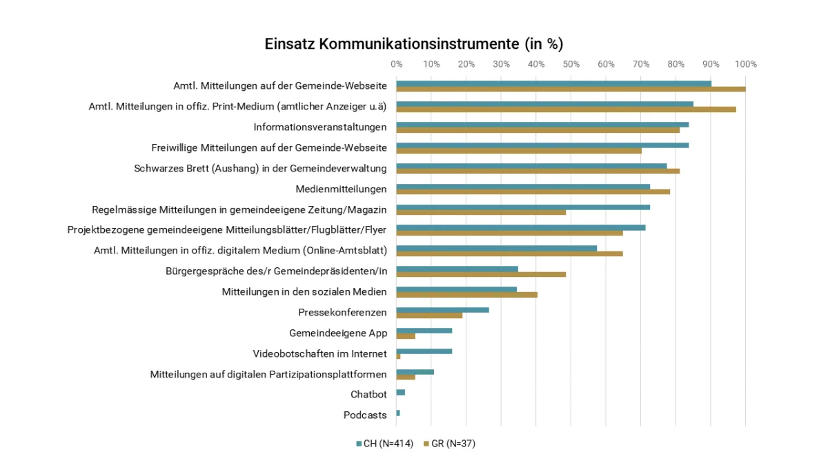 Die Befragung unterstreicht, dass die Gemeinden die strategische Bedeutung der Kommunikation erkannt haben: mehr als 40 Prozent haben inzwischen ein spezifisches Kommunikationskonzept entwickelt. Bei den BĂĽndner Gemeinden sind es 27 Prozent.