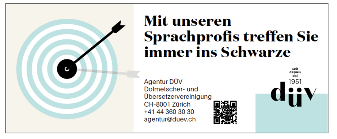 Einerseits erhalte ich über die Agentur der DÜV einen Teil meiner Aufträge. Auch schriftliche Übersetzungen und andere Sprachdienstleistungen, wie die Qualitätssicherung bei KI-generierten Übersetzungen, werden von der DÜV angeboten. Andererseits ist die Vereinigung seit ihrer Gründung 1951 da, um ein gemeinsames Verständnis der Berufspraxis zu fördern. Nach dem Masterabschluss sind viele unserer Mitglieder als Freischaffende auf sich allein gestellt. Auf dem aktuell sehr dynamischen und vielfältigen Markt ist es besonders wichtig, ein solches Netz und eine Zugehörigkeit zu haben, um unsere Zukunftsperspektiven zu stärken