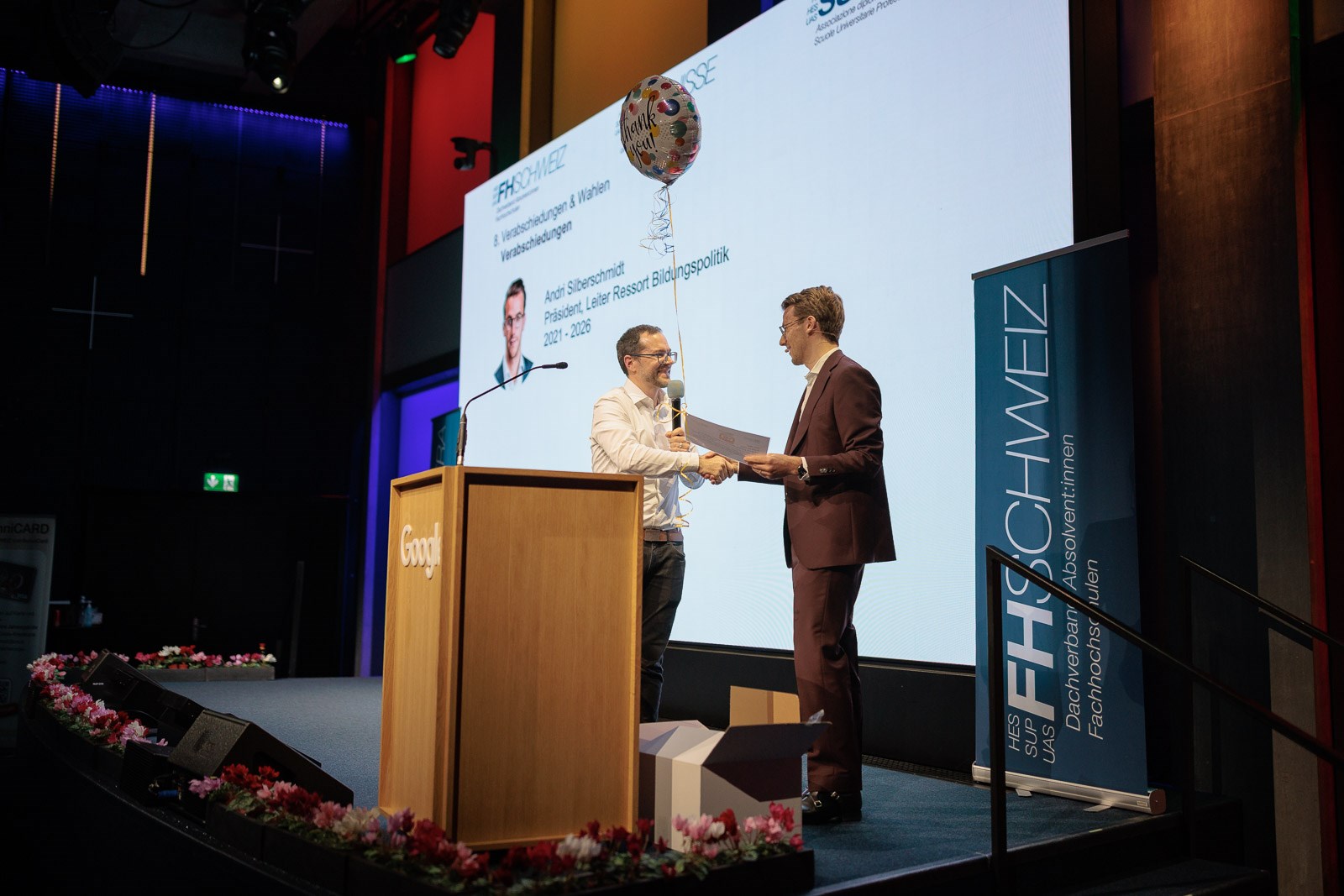 An der Delegiertenversammlung von FH SCHWEIZ am 25.03.2026 bei Google in Zürich standen personelle Veränderungen im Zentrum. Lea Schlenker wurde aus dem Vorstand verabschiedet, ebenso Präsident Andri Silberschmidt. Neu in den Vorstand gewählt wurden Melanie Schmidlin und Deborah Berra. Zudem wählten die Delegierten Ständerat Benjamin Mühlemann zum neuen Präsidenten. Auch gewählt wurden die Alumni EHL, die Apogée Alumni (EMBA HEG-ARC & HEIG-VD), die Alumni FHNW Wirtschaft sowie Swiss Timber Engineers als neue Mitgliedorganisationen.