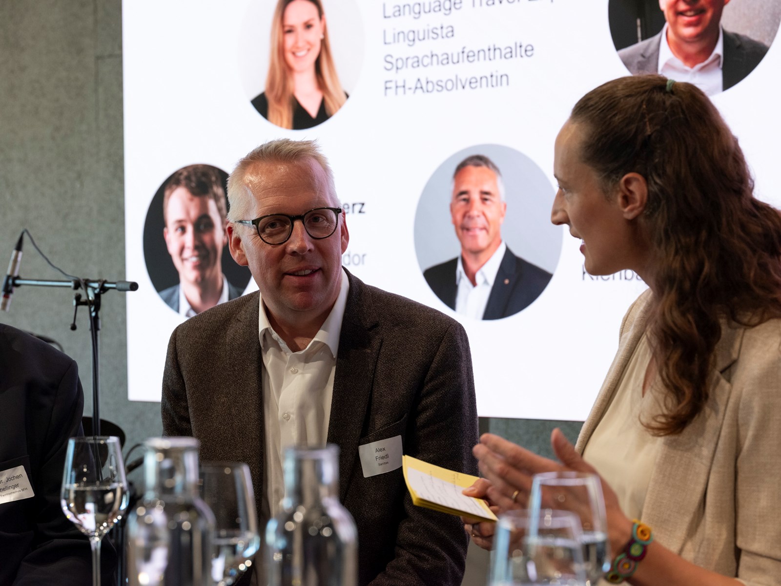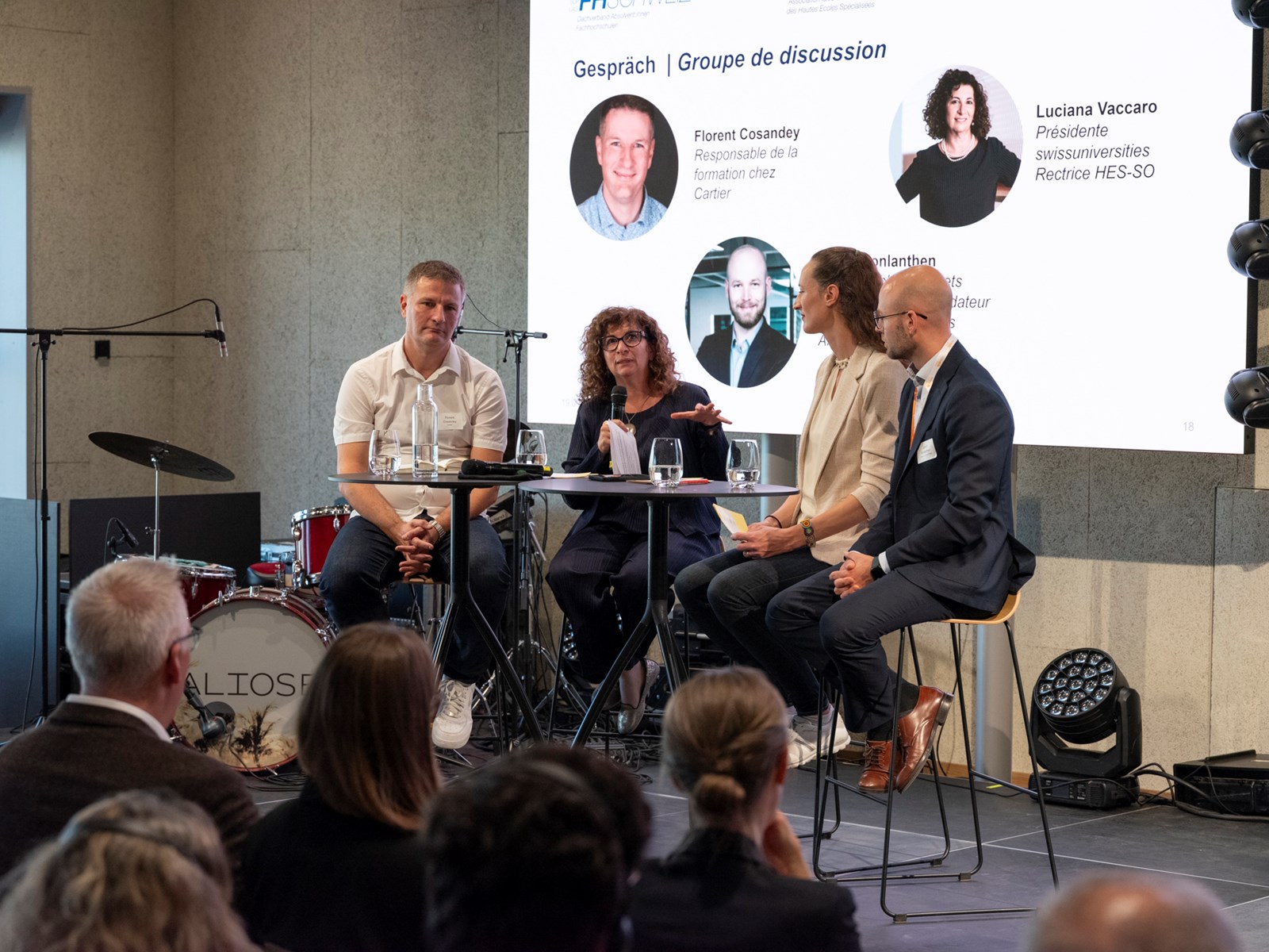 Im Rahmen der SwissSkills 2025 fand am 19.09.2025 das FH-Forum «Von Grund auf kompetent» statt. Moderatorin Sabine Östlund eröffneten den Anlass. Rémy Hübschi (SBFI) präsentierte OECD-Daten zu Grundkompetenzen. In Diskussionen mit Regina Ebnöther, Kenny Merz, Jochen Schellinger, Paul Trüssel, Alex Friedl sowie Luciana Vaccaro, Johan Vonlanthen und Florent Cosandey ging es um Praxisnähe, Kompetenzen und Erwartungen an FH-Absolvent:innen.