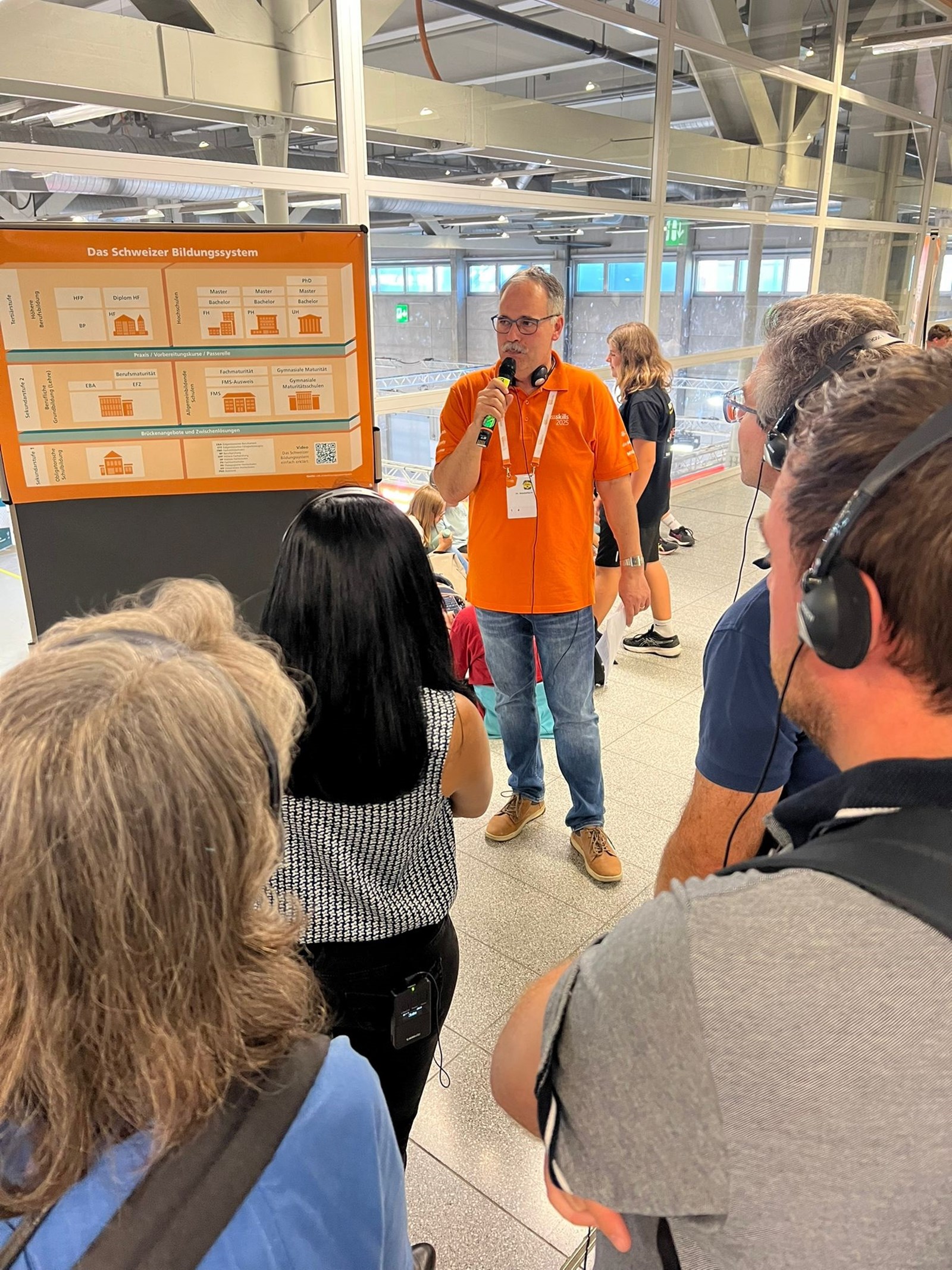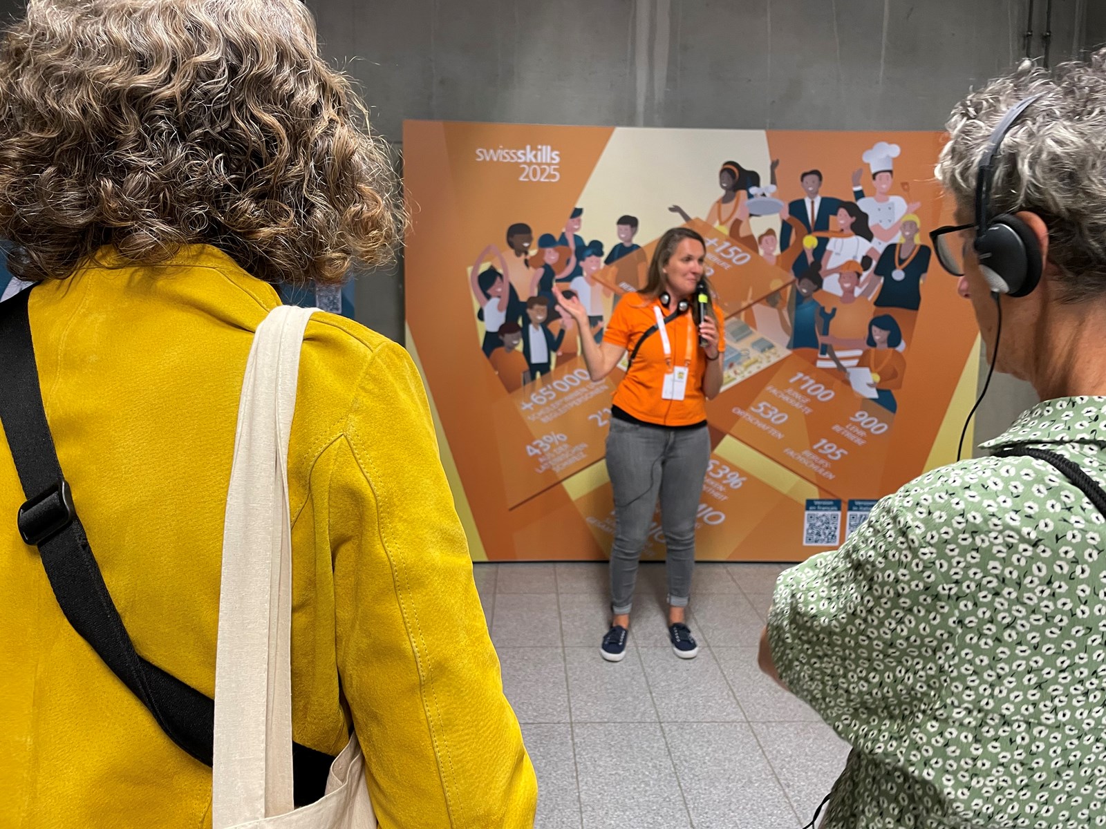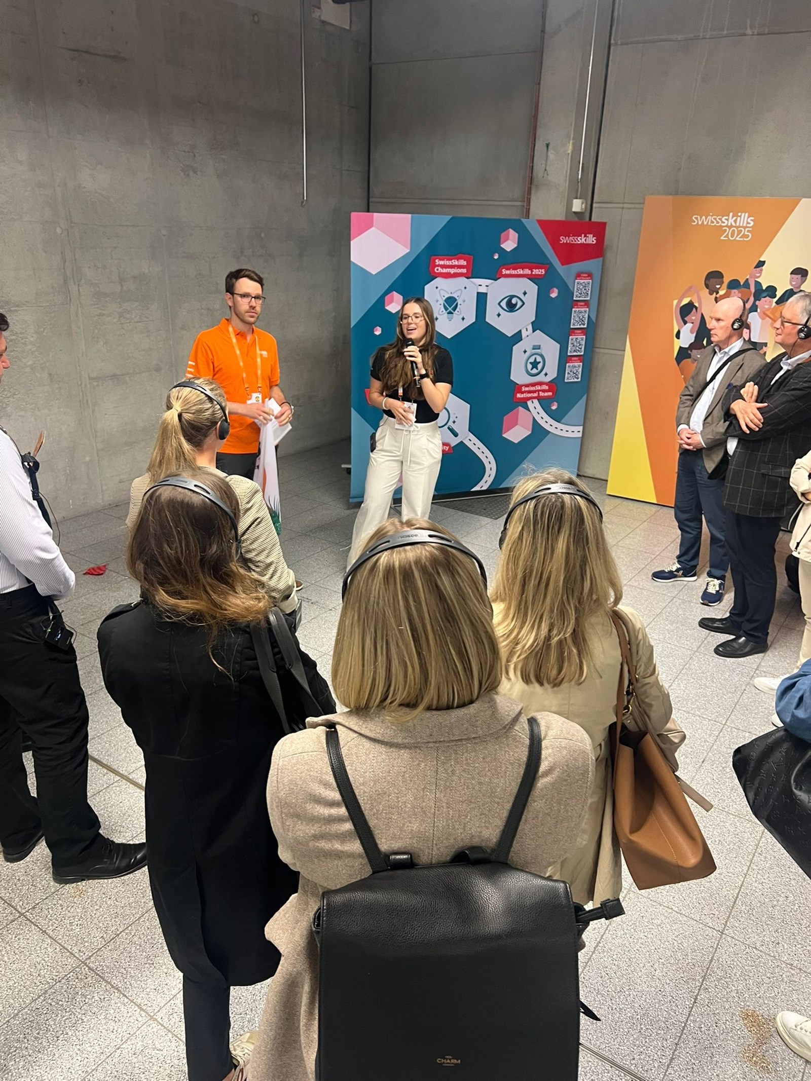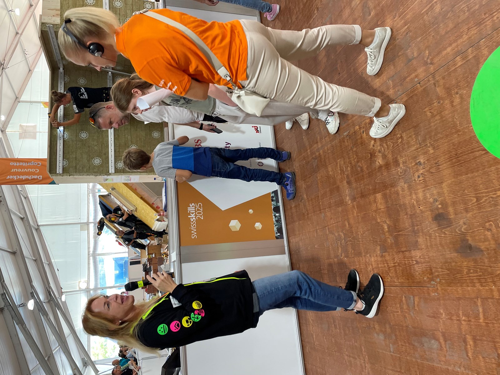 An der SwissSkills 2025 war FH SCHWEIZ mit meindschungel.ch facettenreich präsent: Am Stand in Halle 3.1 empfingen unsere FH-Botschafter:innen Besucher:innen und gaben Auskunft zu Fachhochschulen und Berufsbildung. Von diesem Ausgangspunkt aus führten sie Lehrpersonen, Familien und Bildungsfachleute in 60-minütigen Rundgängen zu ausgewählten Berufen und Meisterschaften. Dabei erzählten sie aus ihrer eigenen Erfahrung, beantworteten Fragen und gaben spannende Einblicke in Chancen und Vielfalt der Berufsbildung.