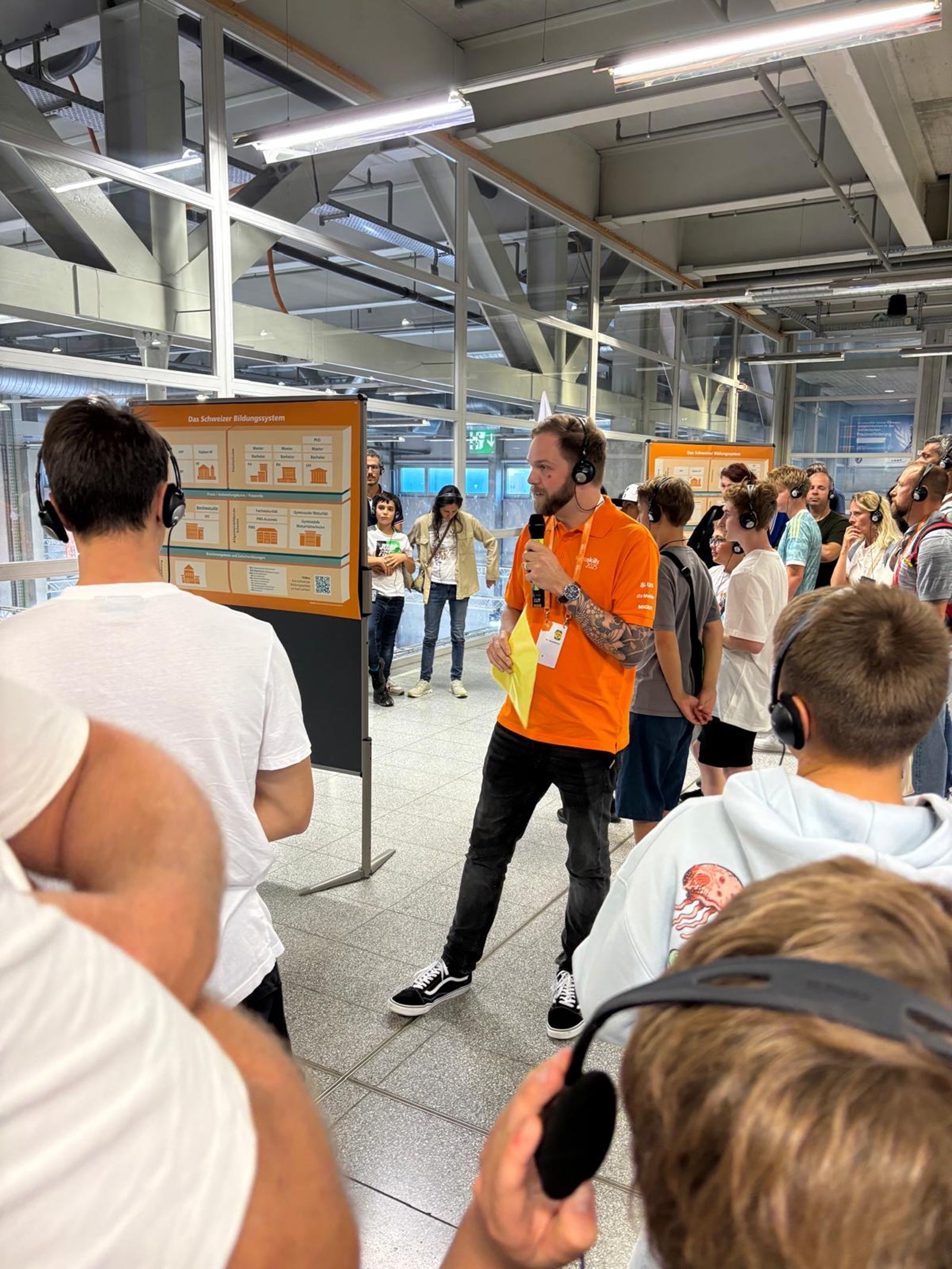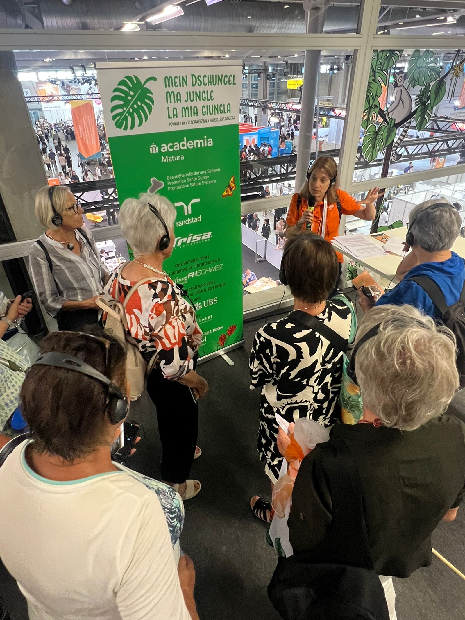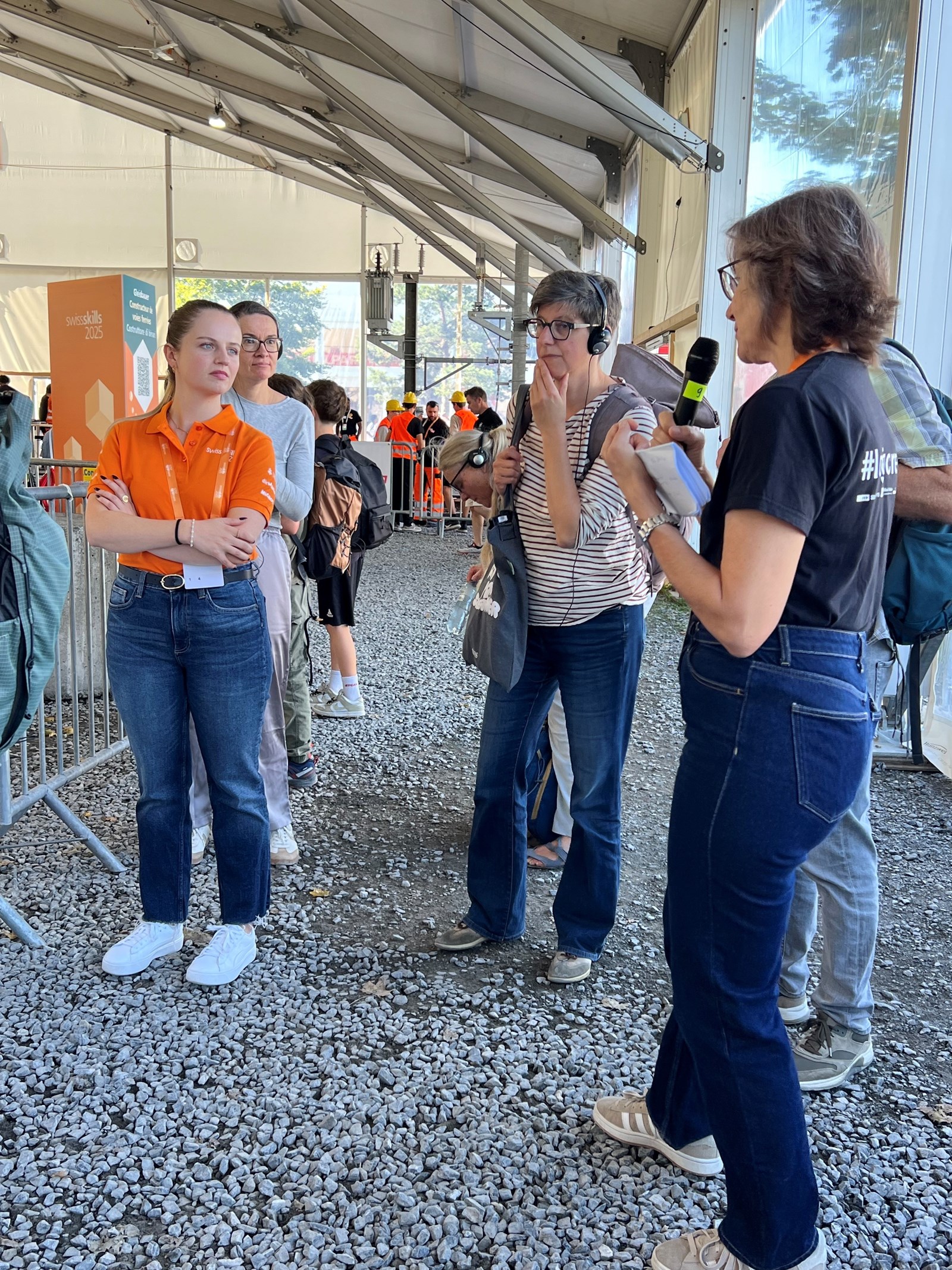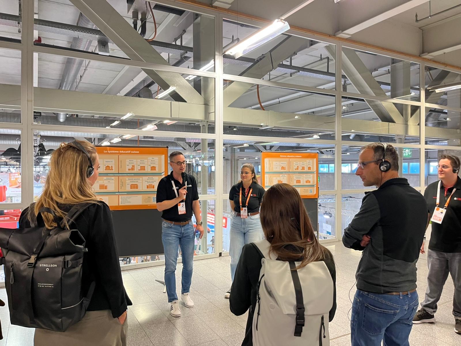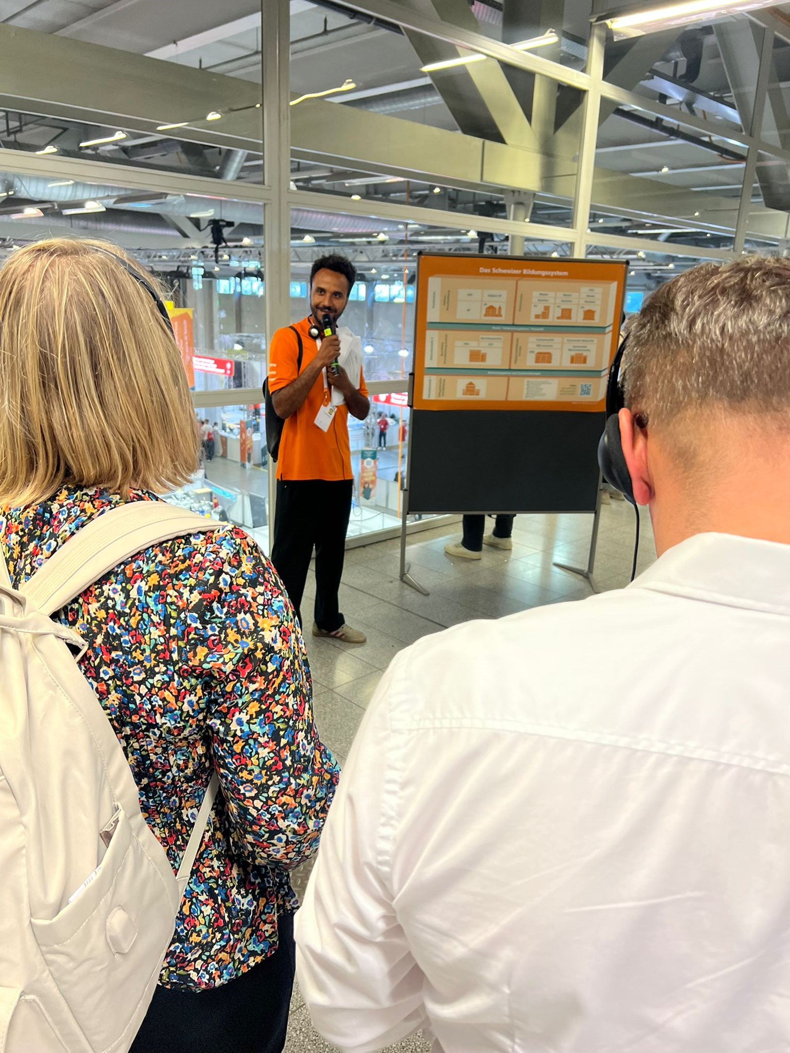 An der SwissSkills 2025 war FH SCHWEIZ mit meindschungel.ch facettenreich präsent: Am Stand in Halle 3.1 empfingen unsere FH-Botschafter:innen Besucher:innen und gaben Auskunft zu Fachhochschulen und Berufsbildung. Von diesem Ausgangspunkt aus führten sie Lehrpersonen, Familien und Bildungsfachleute in 60-minütigen Rundgängen zu ausgewählten Berufen und Meisterschaften. Dabei erzählten sie aus ihrer eigenen Erfahrung, beantworteten Fragen und gaben spannende Einblicke in Chancen und Vielfalt der Berufsbildung.